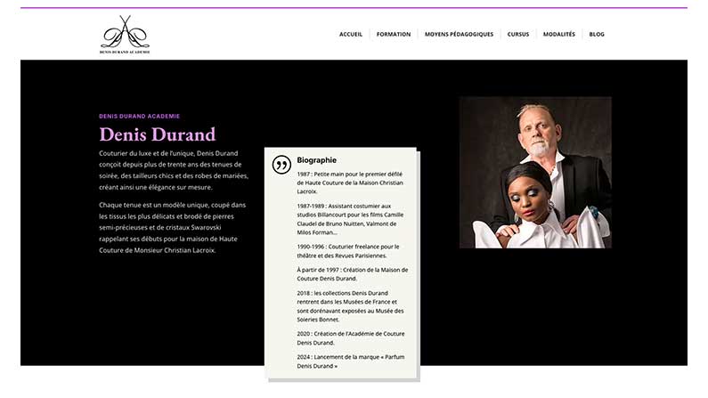 Création de site vitrine Denis Durand Couture à Cannes – Alpes-Maritimes https://denisdurandacademie.fr/ ← Projet précédent Projet suivant → Retour Portfolio No results found.